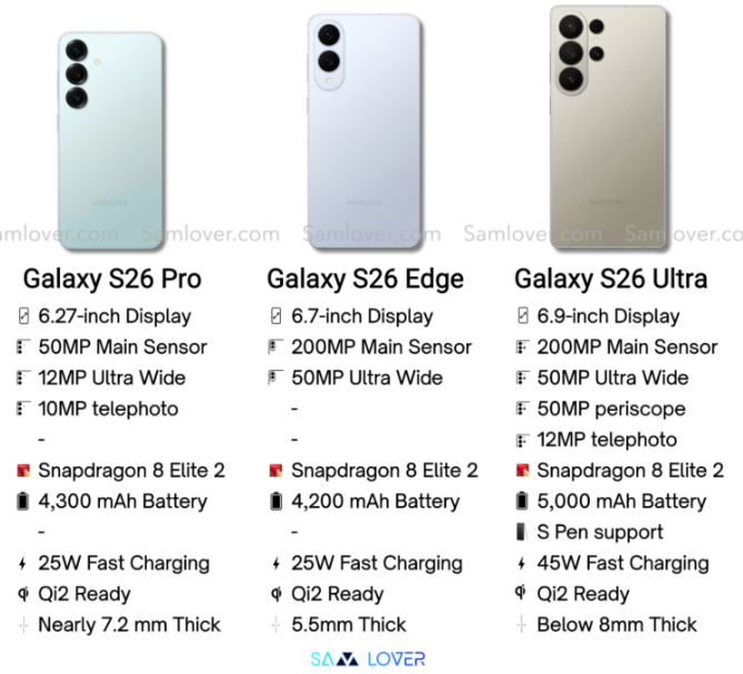 S26 Edge(또는 Pro) 모델은 울트라보다는 한 단계 낮은 사양으로 출시될 가능성이 있습니다.