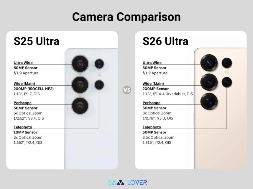 갤럭시 S26 울트라는 카메라 업그레이드가 가장 큰 변화 중 하나로 예상됩니다.