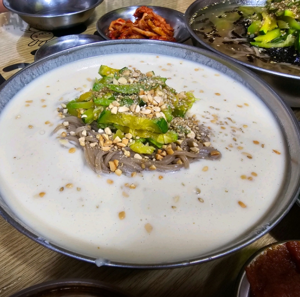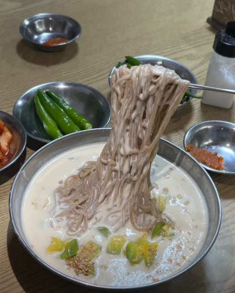 특히 여름철 한정으로 제공되는 메밀콩국수는 직접 간 콩으로 만들어 고소하고 꾸덕한 국물 맛이 일품입니다. 땅콩가루를 솔솔 뿌려 풍미를 더한 콩국수는 더운 날씨에 최고의 선택입니다.