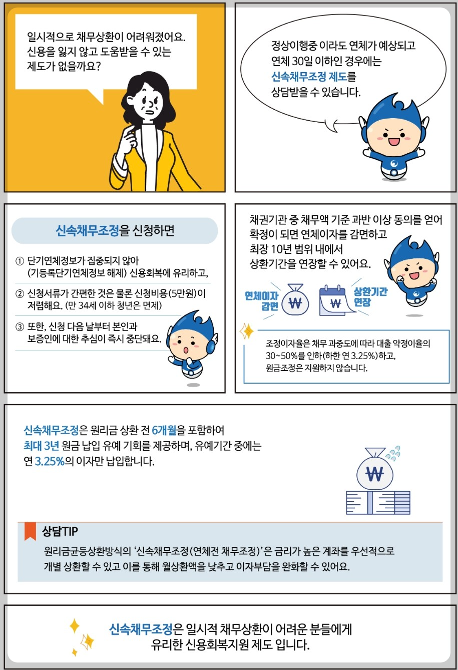 신속채무조정 | 연체 30일 이하 | 이자 감면, 기간 연장 가능 |