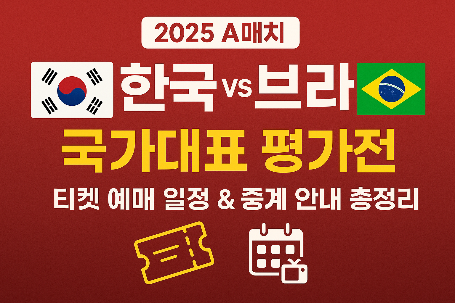 2025년 하반기 대한민국 vs 브라질 A매치 평가전이 서울에서 열립니다. 이 글에서는 예매 일정, 좌석 가격, 대표팀 명단, 중계 방법까지 모두 정리해 드립니다.